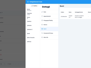 - Nella scheda cliente è possibile visualizzare lo storico di tutti i buoni emessi per quel cliente, con una chiara distinzione tra quelli già utilizzati e quelli ancora validi.