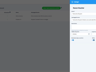 - Validità: impostare il periodo di validità del buono, con data di inizio e fine.